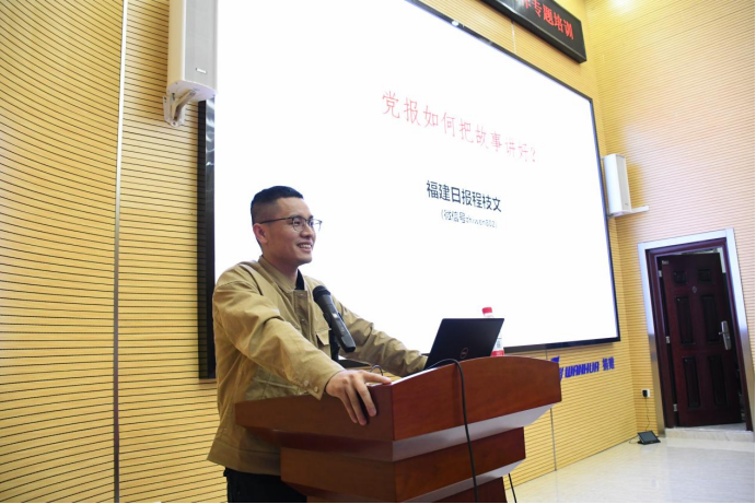 随后,程枝文记者以“时效度”为切入点,结合自身多年写作经验和工作经历,运用大量鲜活案例详细介绍新闻人如何在守住正确的舆论导向基础上,运用正确的传播规律和方法,让传播媒介和宣传内容融入时代的潮流,真正做到守正创新。同时程枝文记者还强调,新闻不是诗词歌赋,不必一味追求遣词造句,而是要用最平实、准确、生动的语言讲好故事,打动人心。