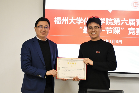 经过激烈角逐,李加庆老师凭借充满激情的教学特点荣获一等奖,王世萍老师获得二等奖,尹鹏博老师及周才金老师获得三等奖。林航书记、阮奇教授、李玲教授及赵素英教授分别为获奖教师颁发奖状。