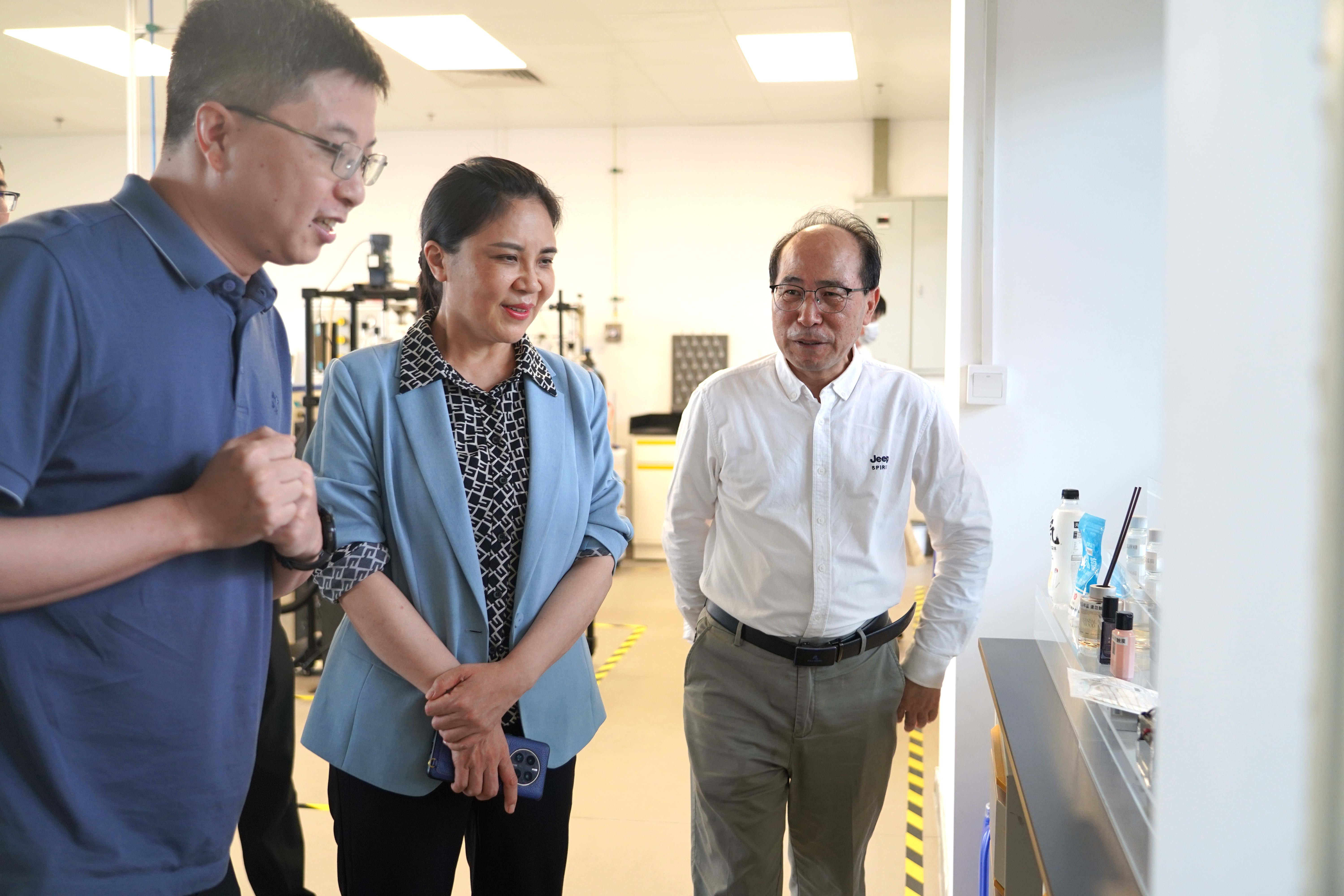 4月29日下午,吴明红校长一行来到泉港校区,走访了福建省清源创新实验室测试中心、校企共建产线以及电子化学品、先进纤维技术、精细化学品先进制造、清洁汽油生产、氨氢催化等研发团队实验室,调研各团队科研攻关以及产业化示范的进展。
