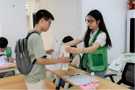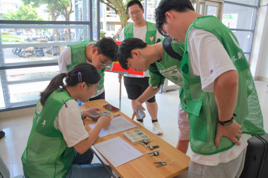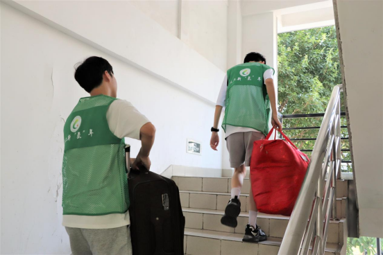 火热的天气、偌大的校园、笨重的行李无法阻挡化工大家庭的温情款待。褪下实验服,换上绿马甲,师兄师姐化身迎新志愿者指引新生“回家”,“迎新号”小推车满载期待和梦想,繁琐的搬迁变得轻松愉快。扫码报到、身份验证、核验材料、钥匙领取……报到现场秩序井然,手续办理有条不紊,忙碌的身影、热情的笑容,志愿者们为初来乍到的懵懂新生提供最贴心的服务。