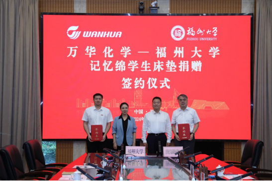 教师代表参加本次活动。据悉,本次万华化学以创新型聚氨酯材料为依托,携手家居企业心打造的高品质学生宿舍慢回弹记忆绵床垫,并向学校捐赠800张记忆棉床垫,为福大学子的“求学筑梦”护航。