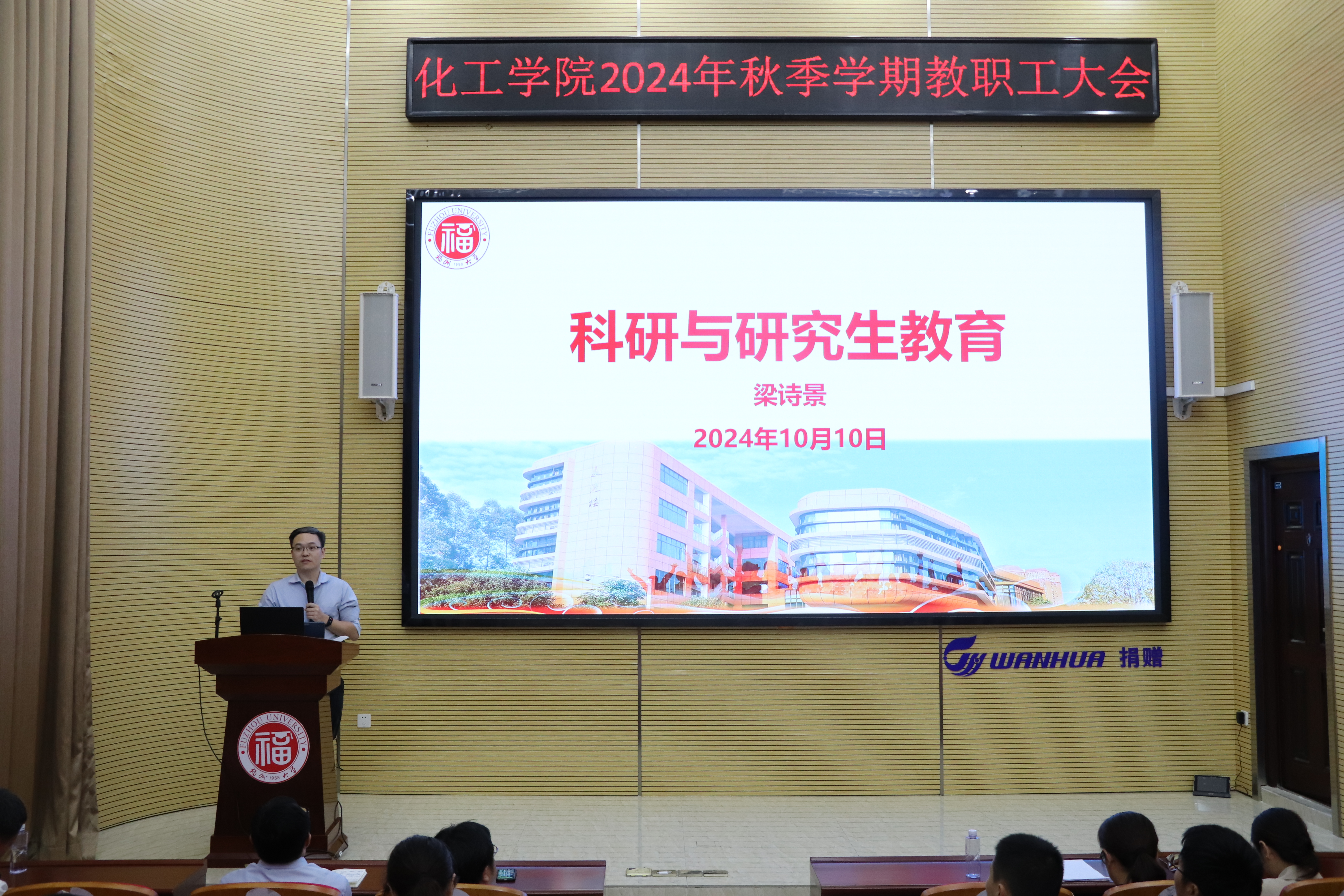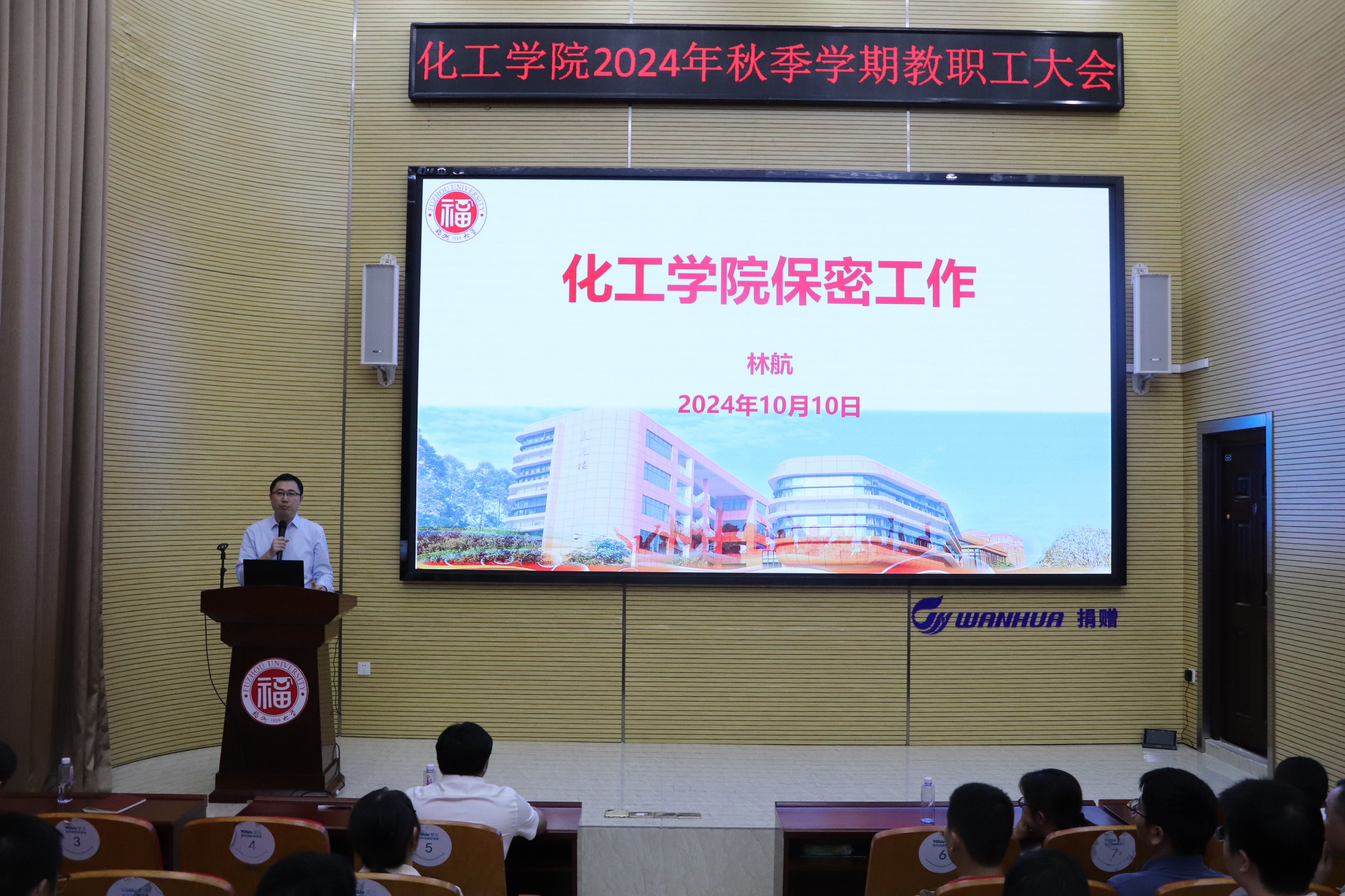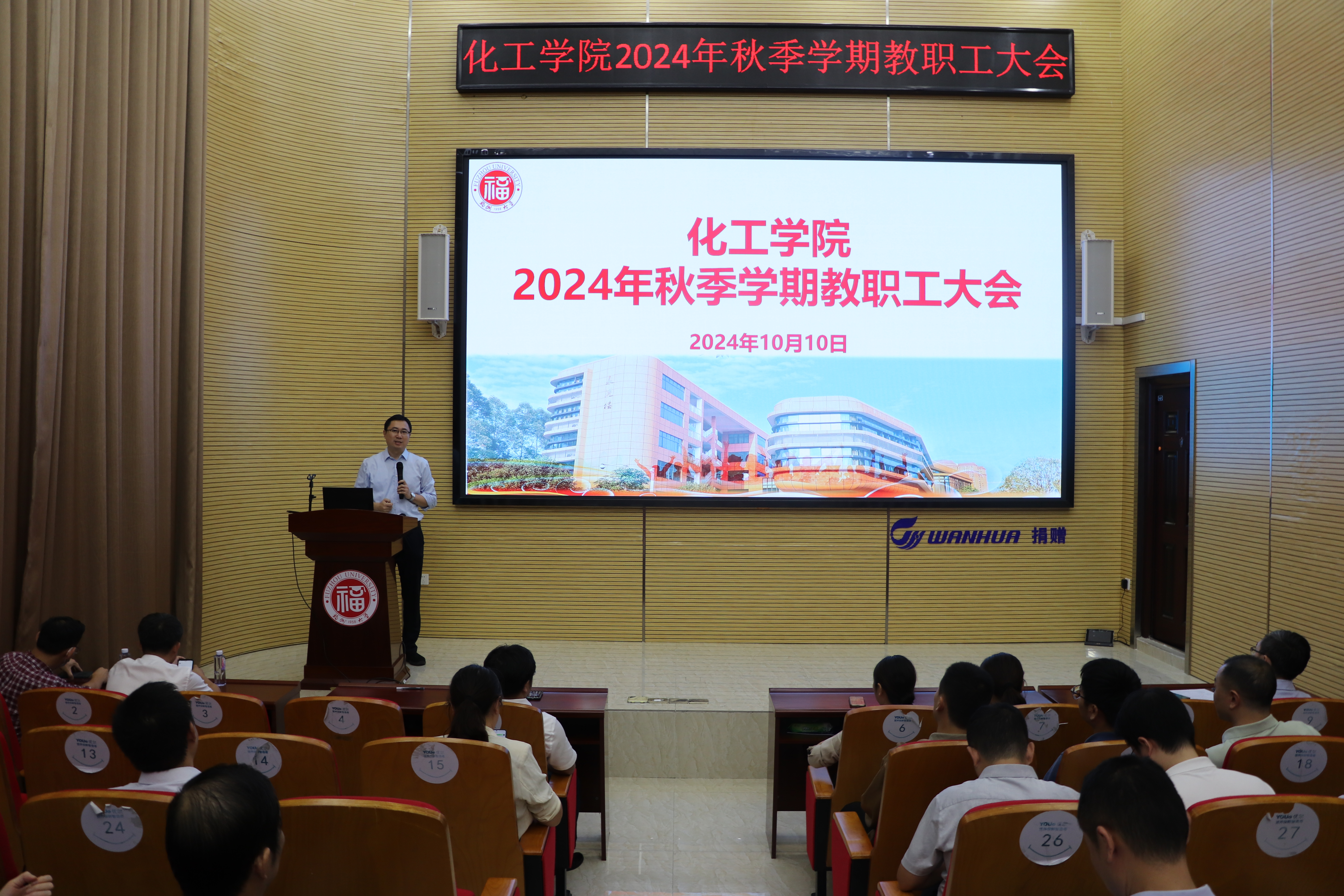 在旗山校区泉港楼优尔报告厅召开秋季学期教职工大会。会议由院党委书记林航主持。学院党政领导及全体教职工参加了会议。