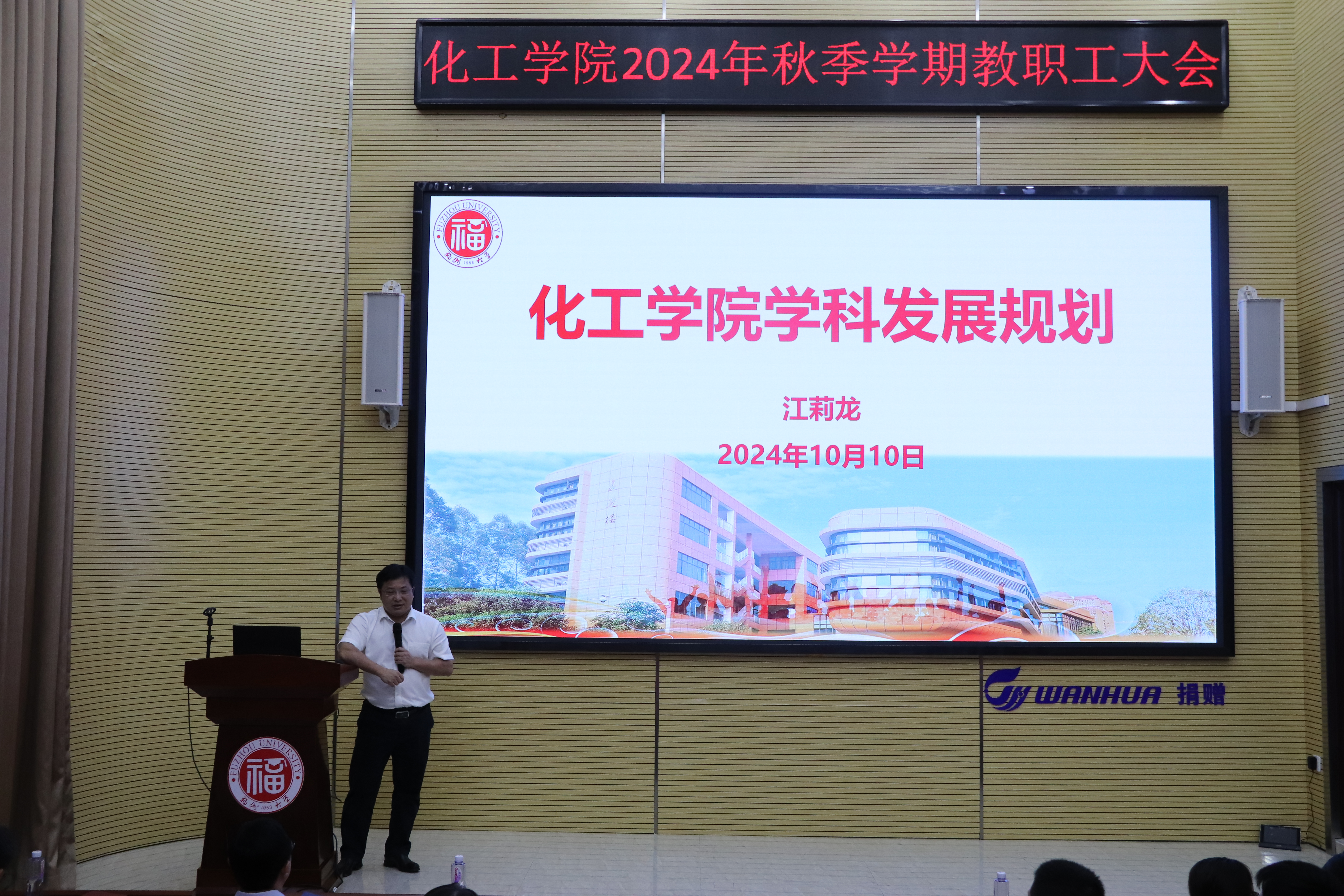 院长江莉龙从党的全面领导、学科建设、人才引育、项目申报、社会服务、国际合作等方面提出学科发展规划的思路和方向。江莉龙院长重点强调,要学习贯彻好党的二十届三中全会精神,不折不扣做好巡视整改工作,提前谋划新一轮“双一流”学科建设和“十五五”规划,充分发挥氟氮化工新材料全国重点实验室、化肥催化剂国家工程研究中心等国家级平台以及与紫金集团、恒申集团等头部企业共建产业平台的优势,加快高层次人才队伍建设,全面提高人才自主培养质量,全面增强科技创新能力,全面提升社会服务水平和对外合作交流能力。江莉龙院长还勉励青年教师主动融入团队,发扬福大化工人优良传统,乘势而上、再接再厉,为学院争创一流学科贡献力量。