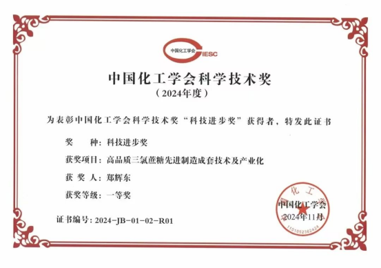 郑辉东教授的“高品质三氯蔗糖先进制造成套技术及产业化”项目荣获中国化工学会科技进步一等奖!