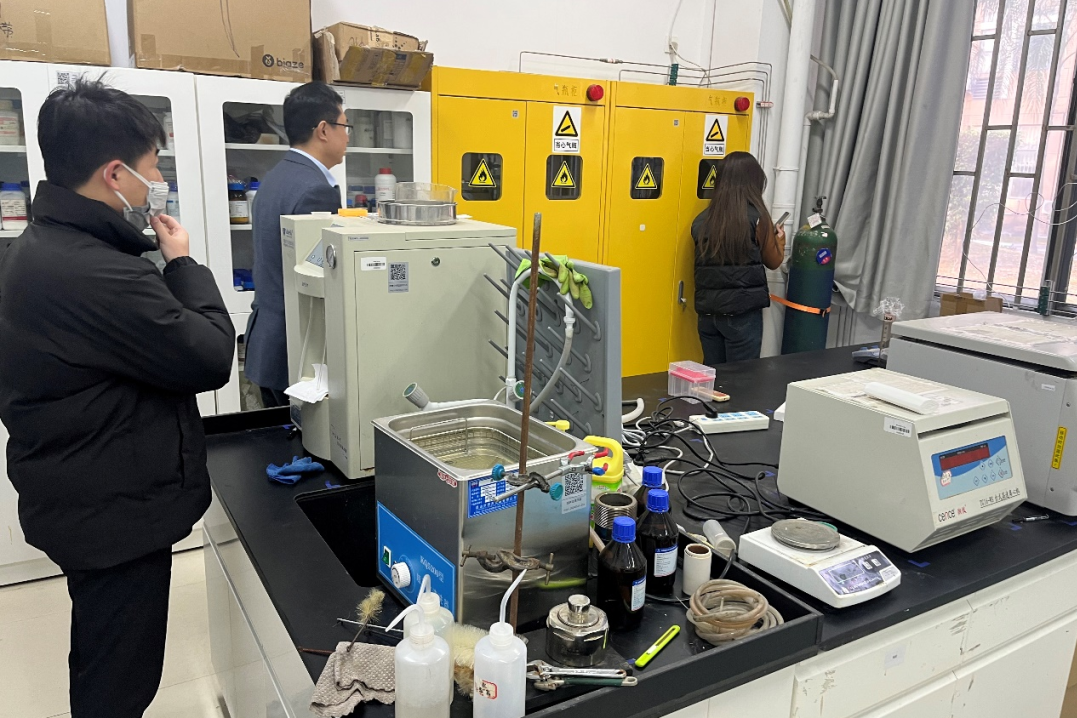 在旗山校区,学院林航书记、李玲副院长、张朱武老师、吴乃昕老师带队对学院位于第一学科群和泉港楼的实验室进行了安全检查,重点加强对危险源的防控和实验室日常使用规范。检查过程中,检查组提醒各实验室使用人树牢安全意识,对检查过程中发现的安全隐患要求逐一落实整改,明确使用人的安全责任。