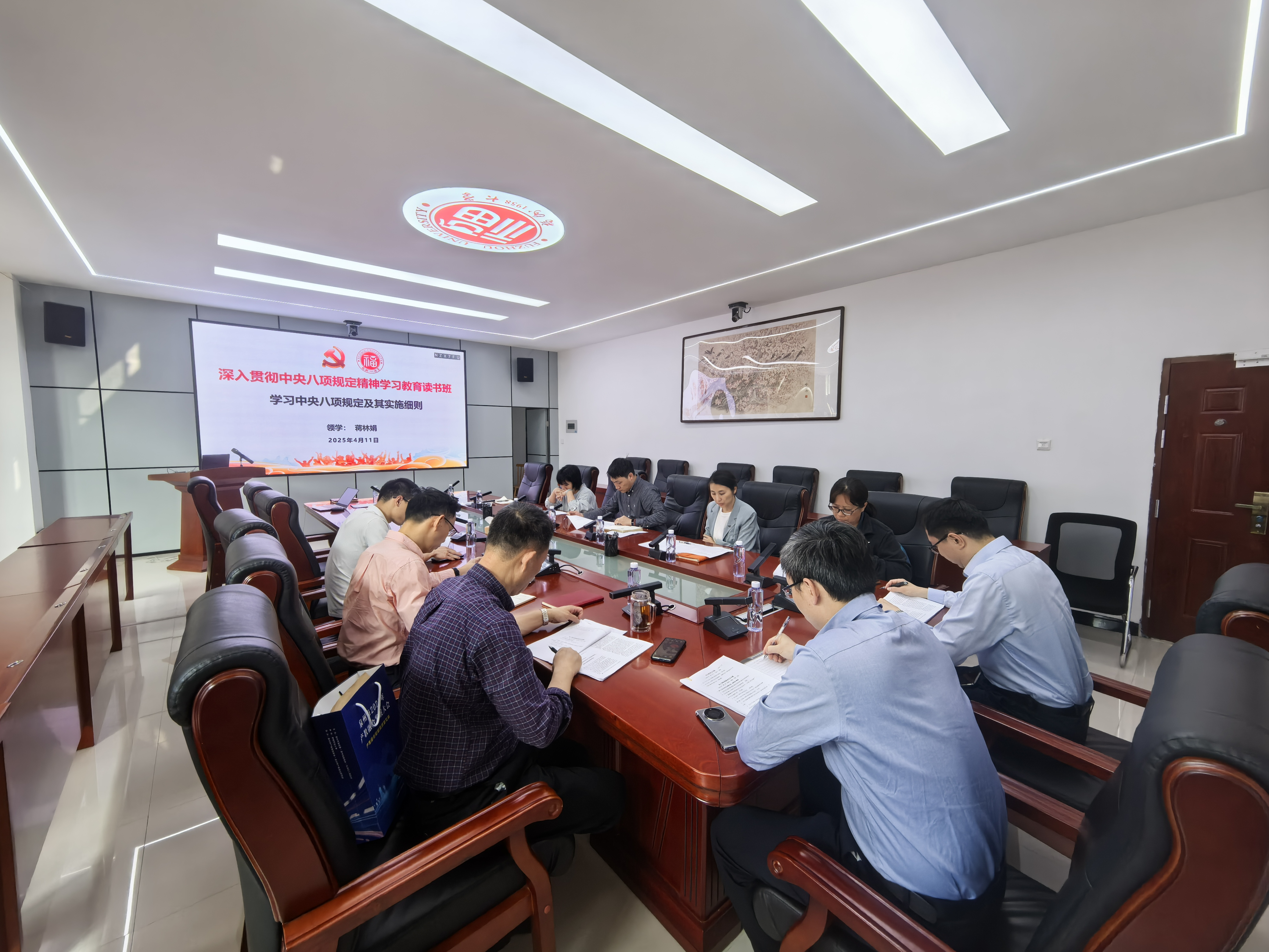 举行2025年度党委理论学习中心组第四次学习会暨深入贯彻中央八项规定精神学习教育第一期读书班。学院党委书记林航作开班讲话,学院党委委员、院长助理及科级干部参加会议。