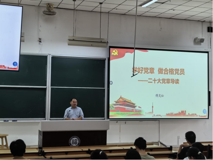 数字技术管理办公室傅茂松副研究员以《学好党章,争做合格党员》为题,系统解读二十大党章的结构与内容,讲解学习党章的重要意义与方法,引导学员将党章要求融入日常,实现政治、思想、组织和行动入党的统一。
