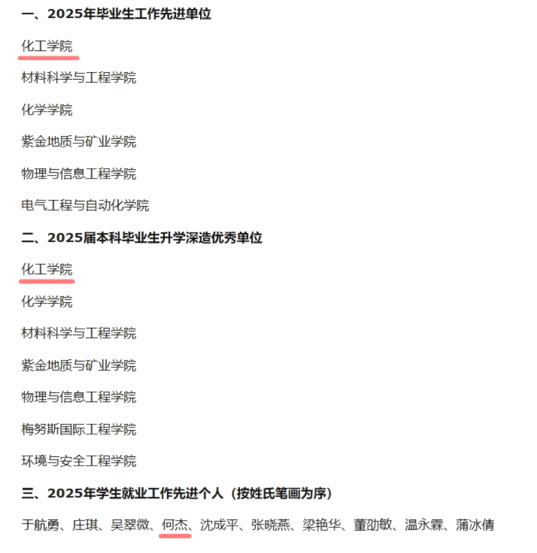 樱花动漫 再获双项就业工作荣誉,连续五年获评“毕业生工作先进单位”、获评“本科毕业生升学深造优秀单位”,何杰老师获“2025年学生就业工作先进个人”称号。这些成果充分彰显了学院人才培养与就业工作的扎实成效,展现了全员参与、全程指导的就业工作体系的积极作用,也体现了学院教育教学质量的持续提升与化工学子优良的综合素质及竞争力。