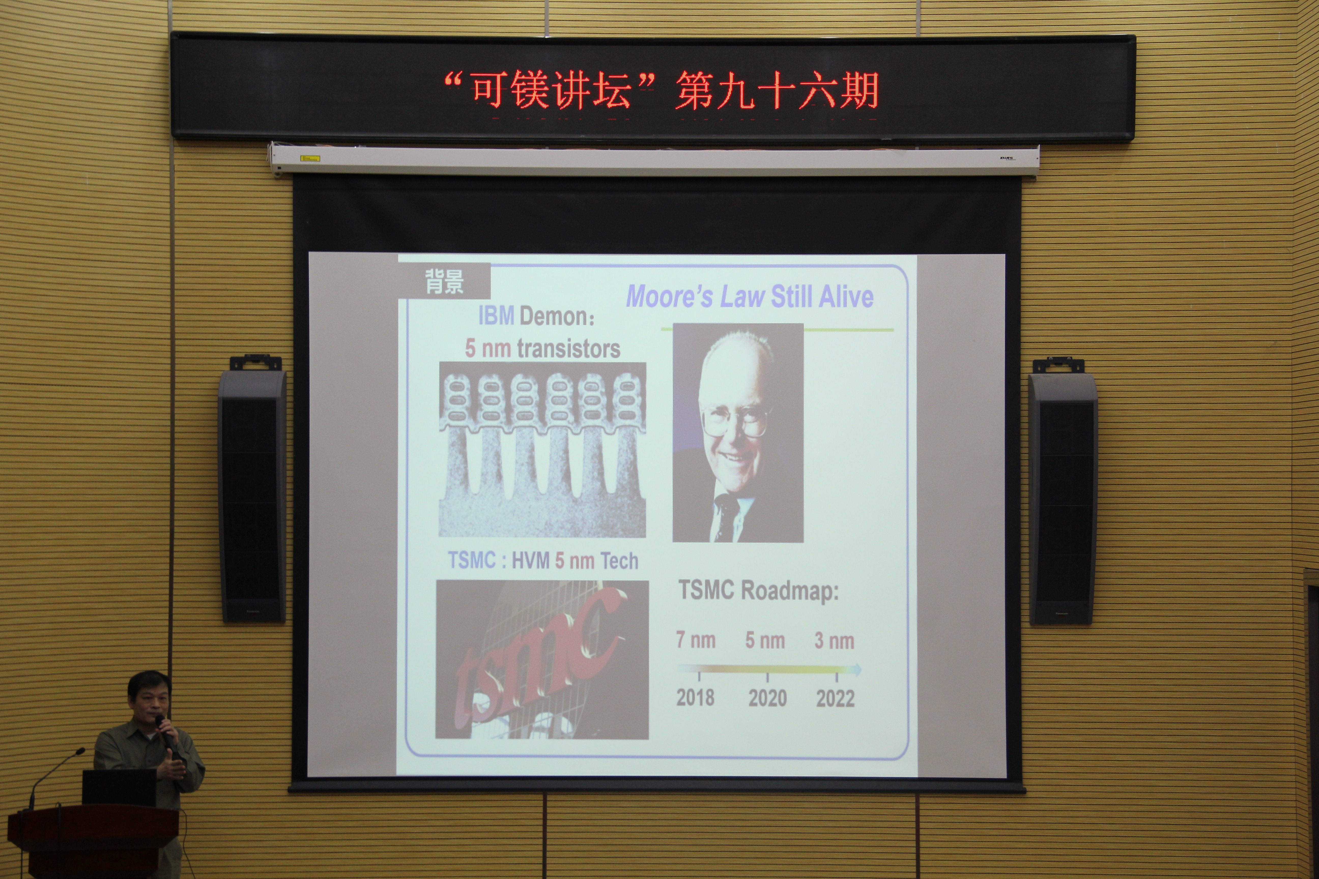 师生带来了一期题为“90nmArF光刻胶和10-5nm分辨率DSA光刻图形化材料的研发”的报告,很多对相关领域感兴趣的师生前来聆听。