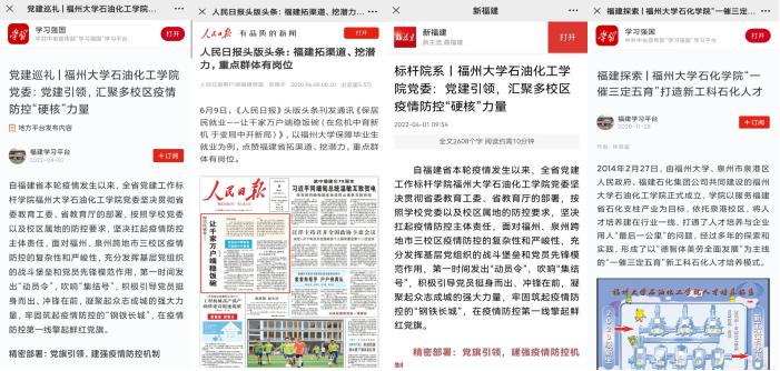 人民日报、学习强国等主流媒体多次报道学院党建工作典型经验