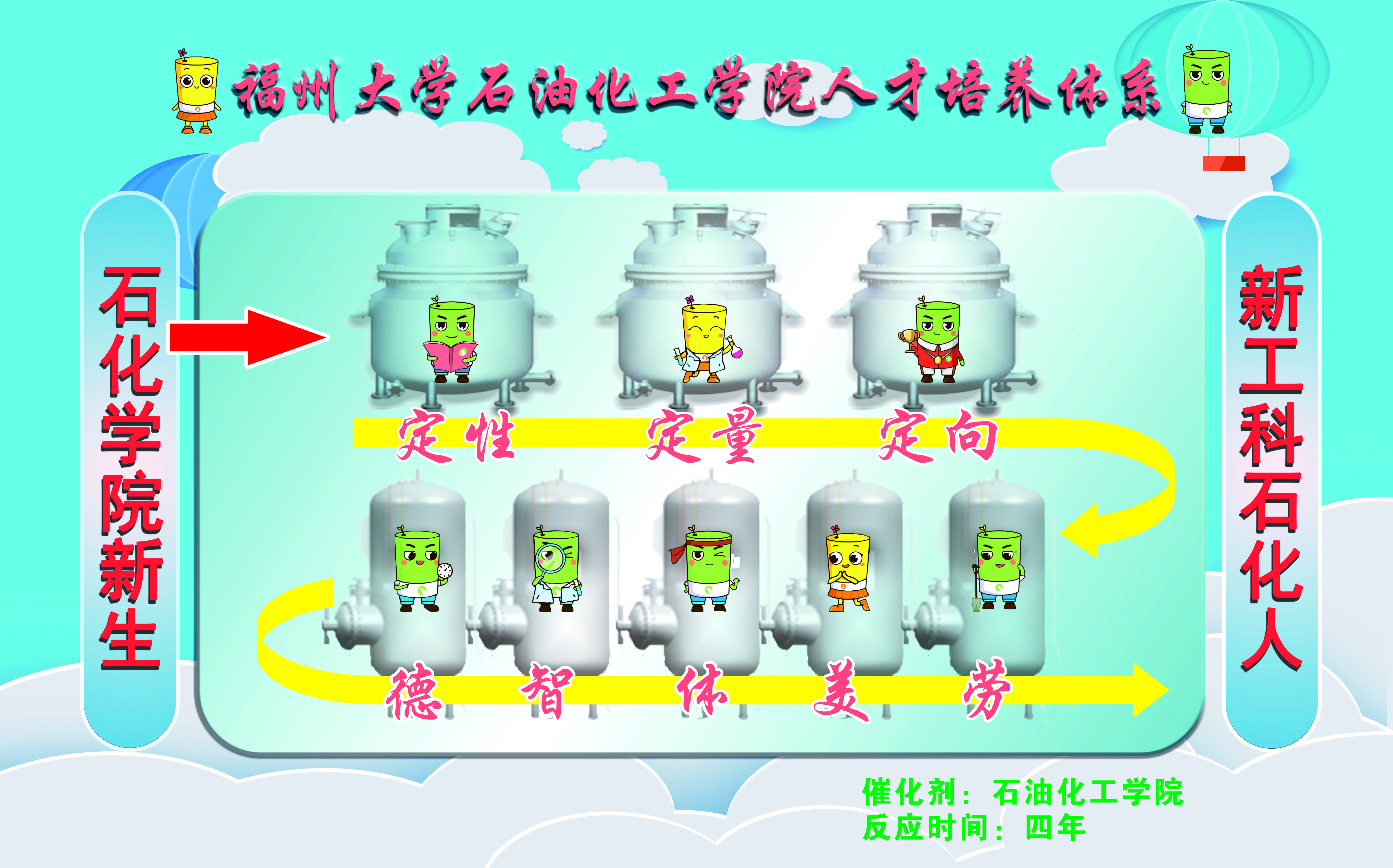 正式成立,学院以服务福建省石化支柱产业为目标,依托泉港校区,将人才培养建在行业一线,打通了人才培养与企业用人“最后一公里”的问题,经过多年的探索和实践,形成了以“德智体美劳全面发展”为主线的“一催三定五育”新工科石化人才培养模式。