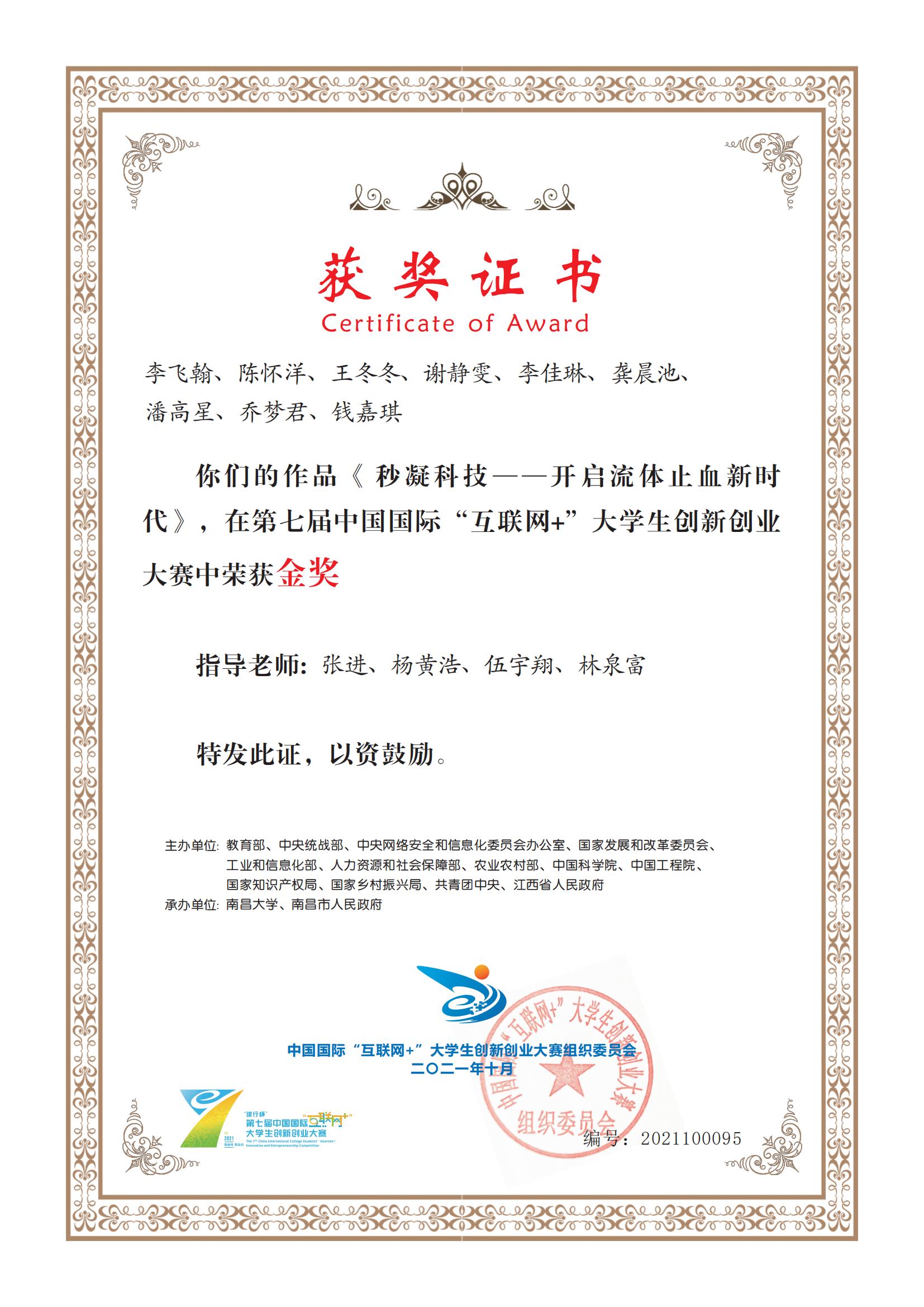 研究生荣获中国国际“互联网+”大学生创新创业大赛全国奖