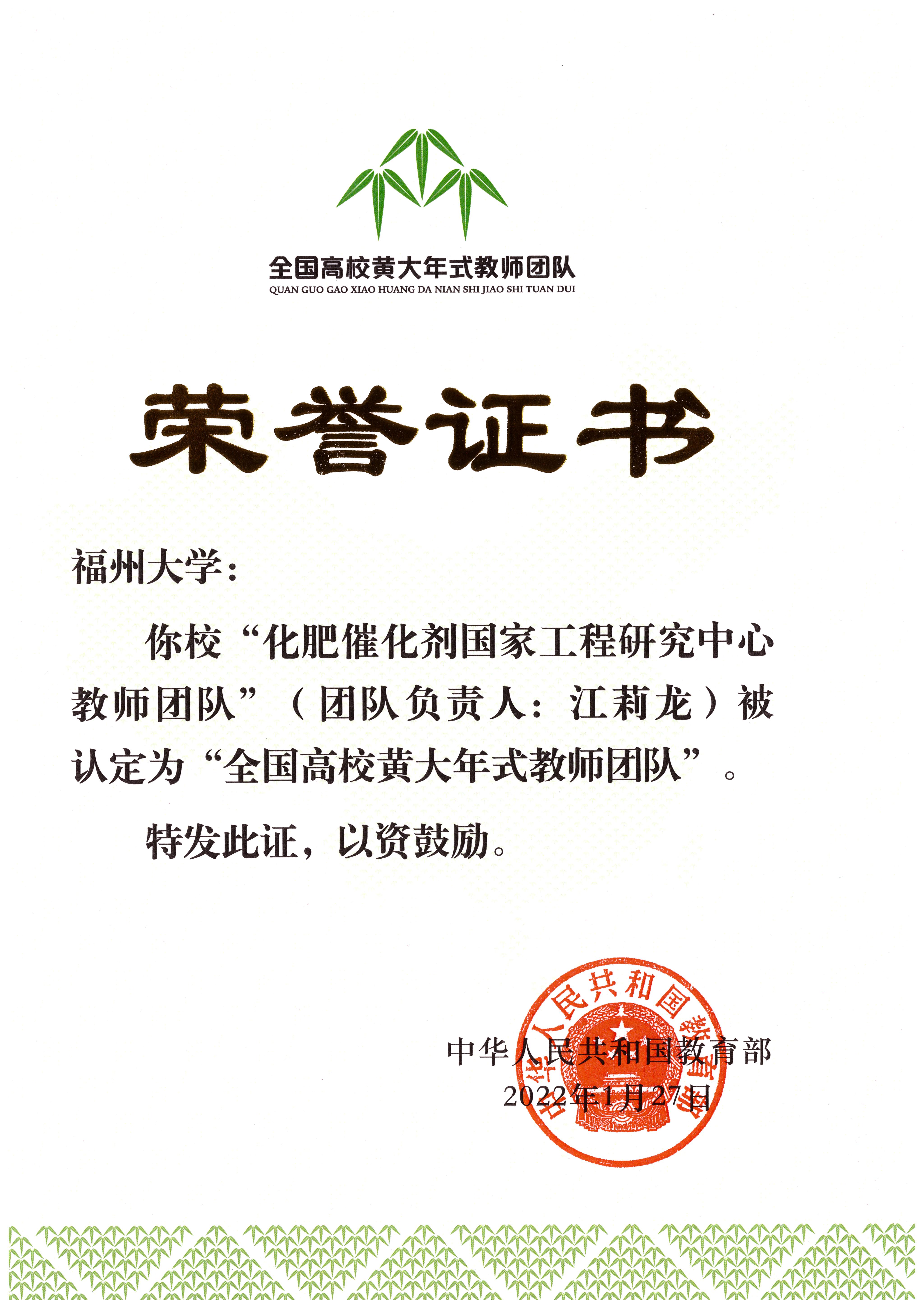 化肥催化剂国家工程研究中心教师团队入选“全国高校黄大年式教师团队”