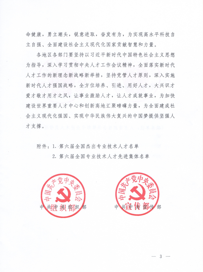 鲍晓军入选全国杰出专业技术人才