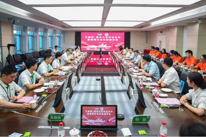 —三棵树校企合作暨暑期社会实践座谈会。会上,三棵树朱奇峰副总裁为与会人员详细介绍了公司情况以及2024届招聘计划,石化学院团委书记伍宇翔、博士生实践队队长赵丹先后向付贤智校长汇报了石化学院2023年暑期社会实践总体情况和博士生实践队社会实践进展,校企双方还就产学研合作等方面进行了深入交流。