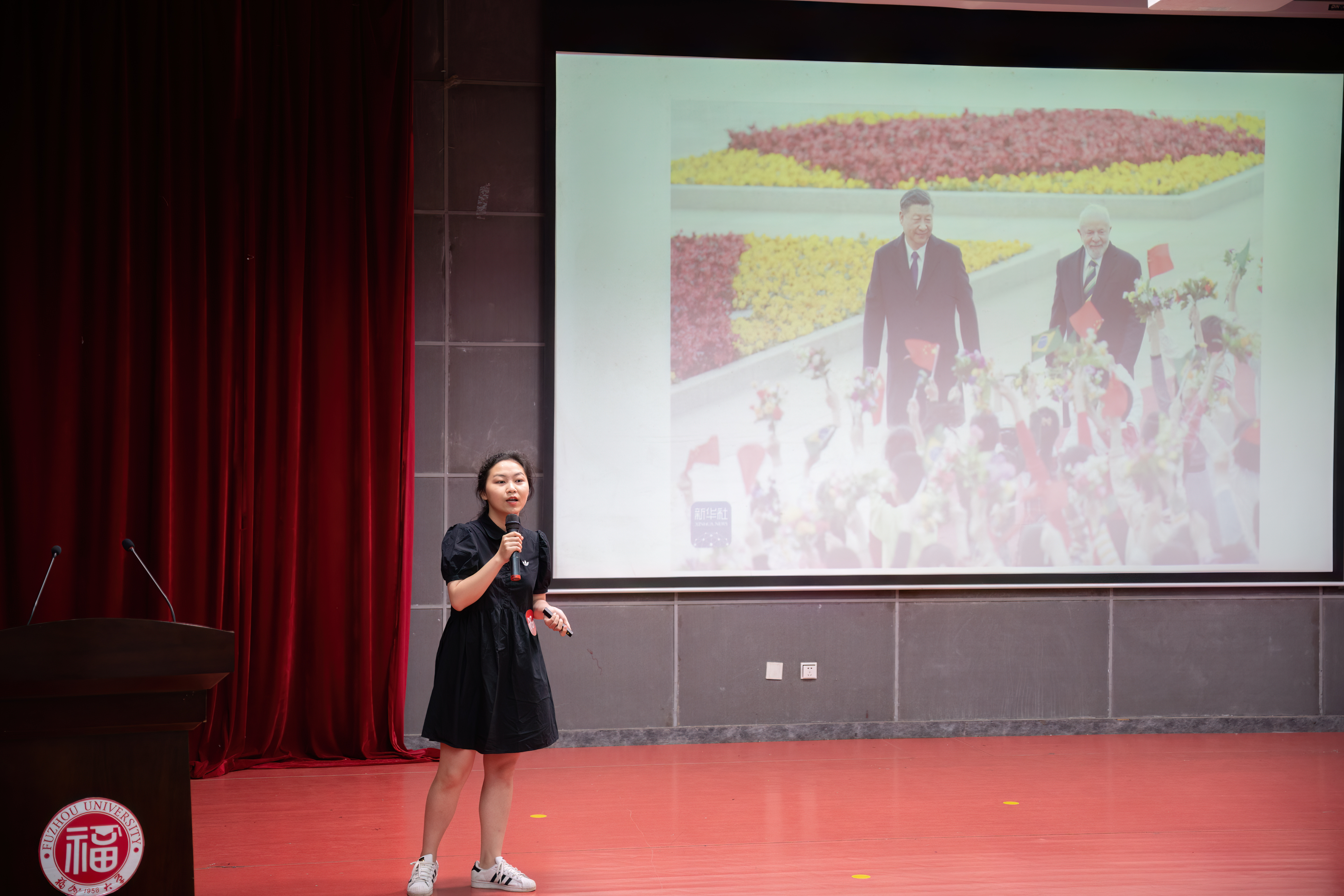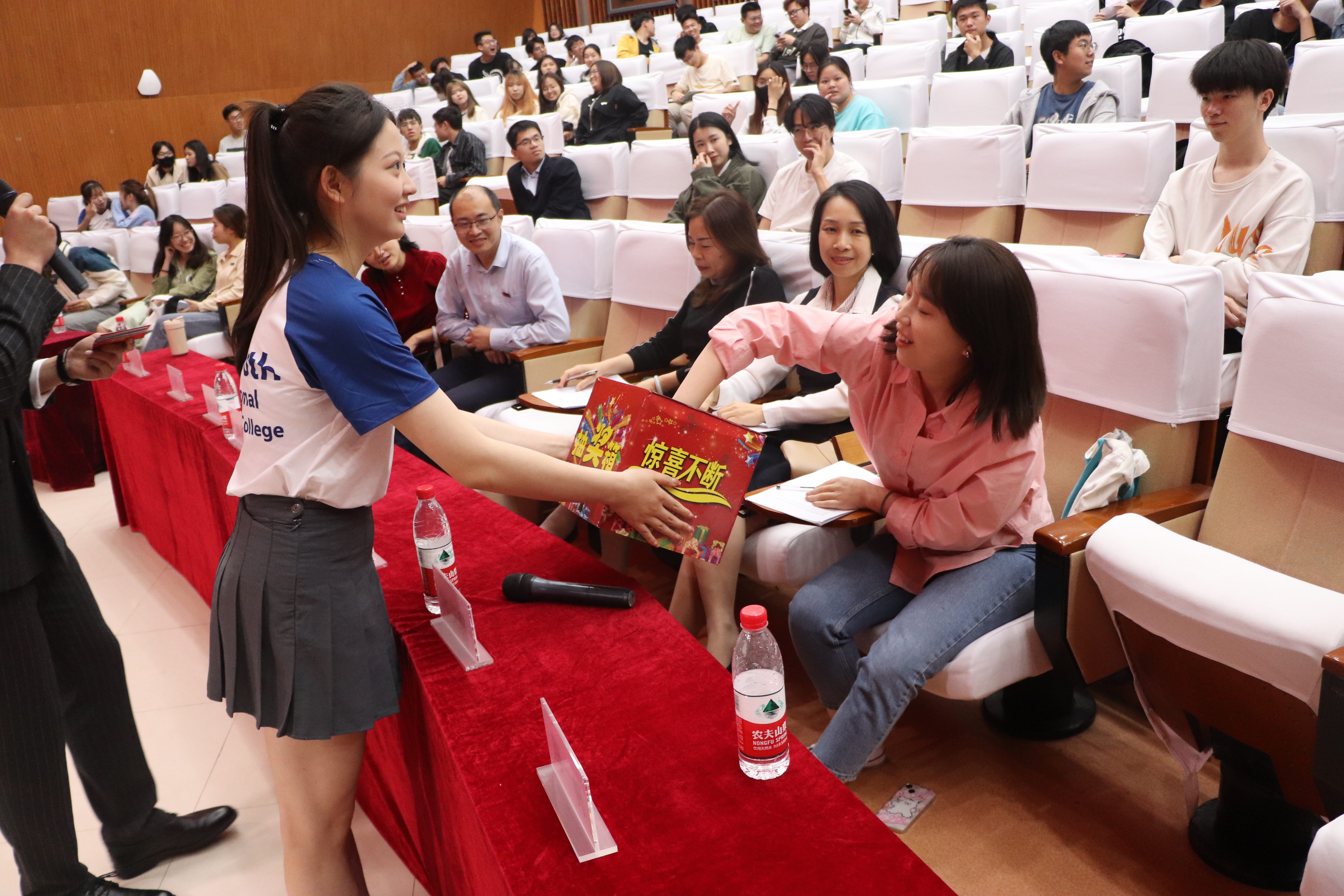 第一轮比赛后,排名前6的选手进入决赛第二轮即兴演讲,参赛选手从六组关键词里随机抽取一组,进行限时2分钟即兴演讲。比赛开始前,主办方特地安排了惊喜的抽奖环节,将现场气氛推向顶峰。第二轮比赛开始,选手们围绕建党一百周年、家乡、国际化视野、共赢等主题,激情澎湃地抒发自己的观点,语言流利、逻辑清晰、思维敏捷,让大家听到当代青年以更国际化的方式,讲述中国故事、发出中国声音。