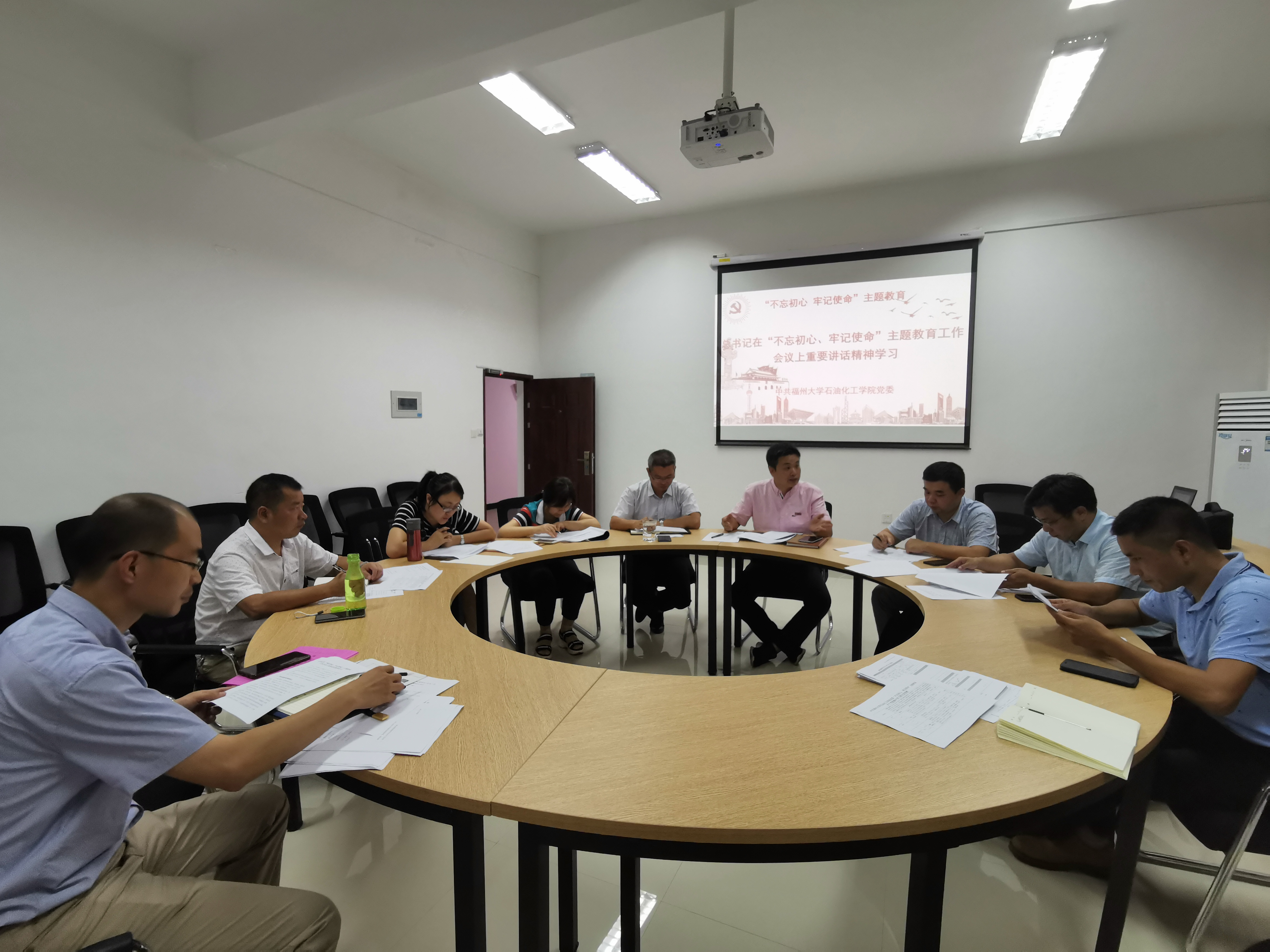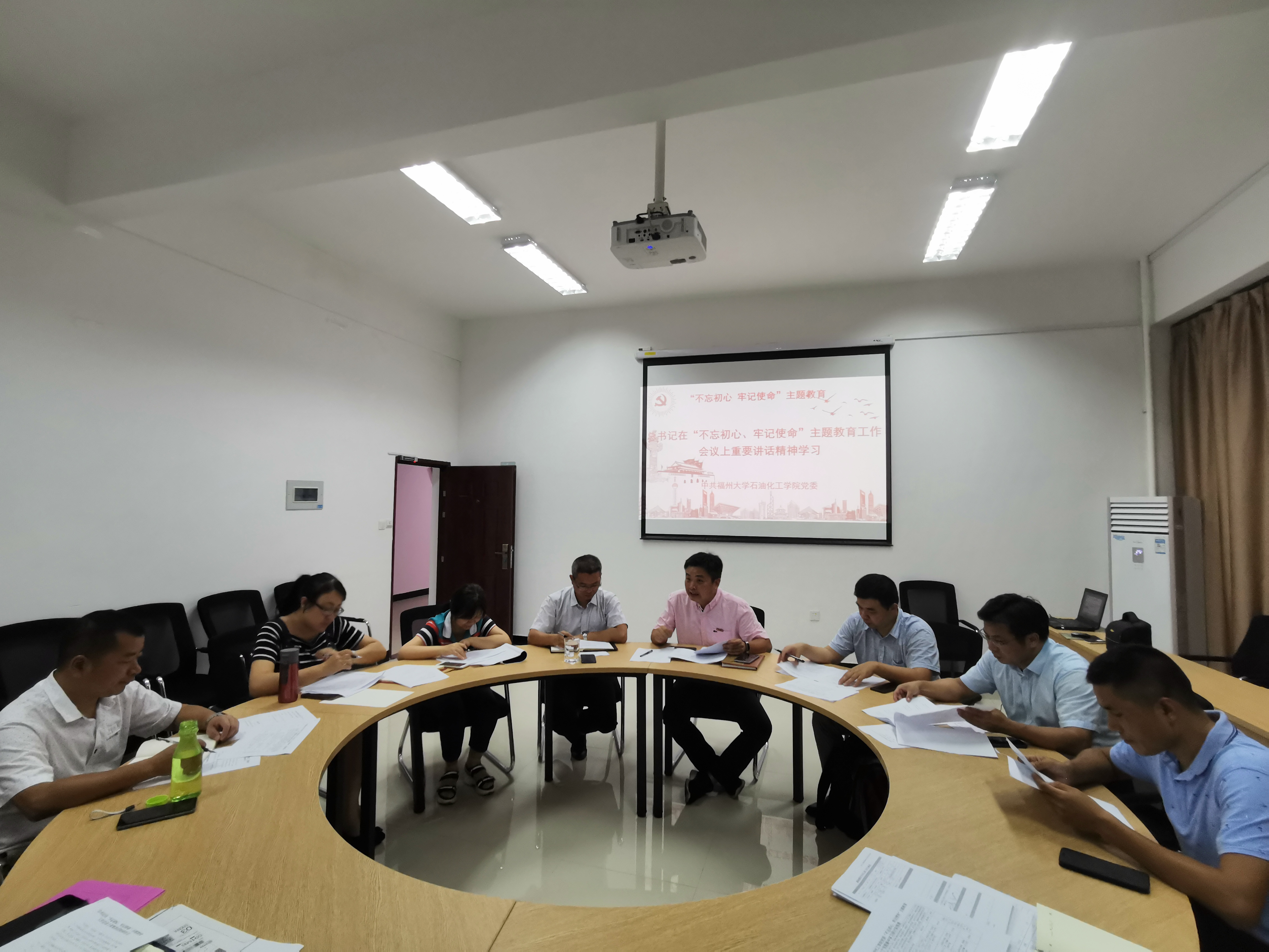 党委在学院泉港楼304会议室举行“不忘初心、牢记使命”主题教育专题学习活动,学院党委书记叶志清、院长鲍晓军、常务副院长侯琳熙、党委副书记岳志强、党委委员江莉龙、赵素英、副院长袁珮、副院长陈全成、工催中心副主任许春华参加了本次集中学习活动。