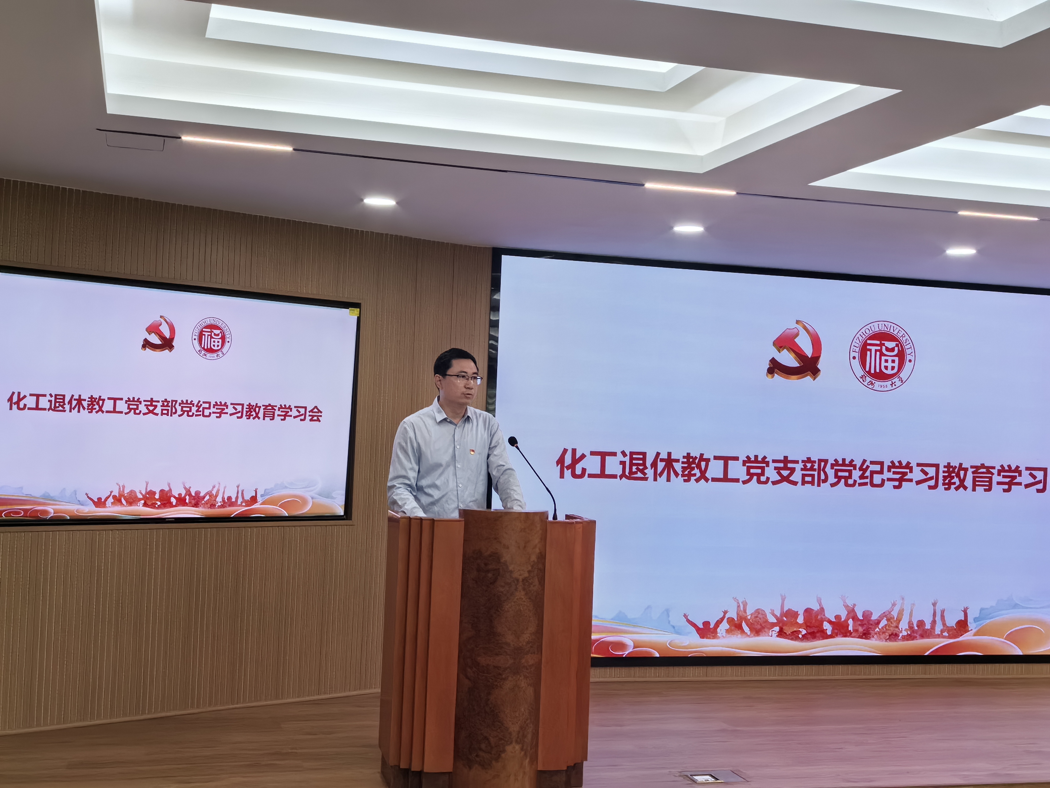 在怡山校区化肥催化剂国家工程研究中心7楼会议室召开退休教工党支部党纪学习教育会,学院党委书记林航、组织员以及退休教工支部党员参加了会议。