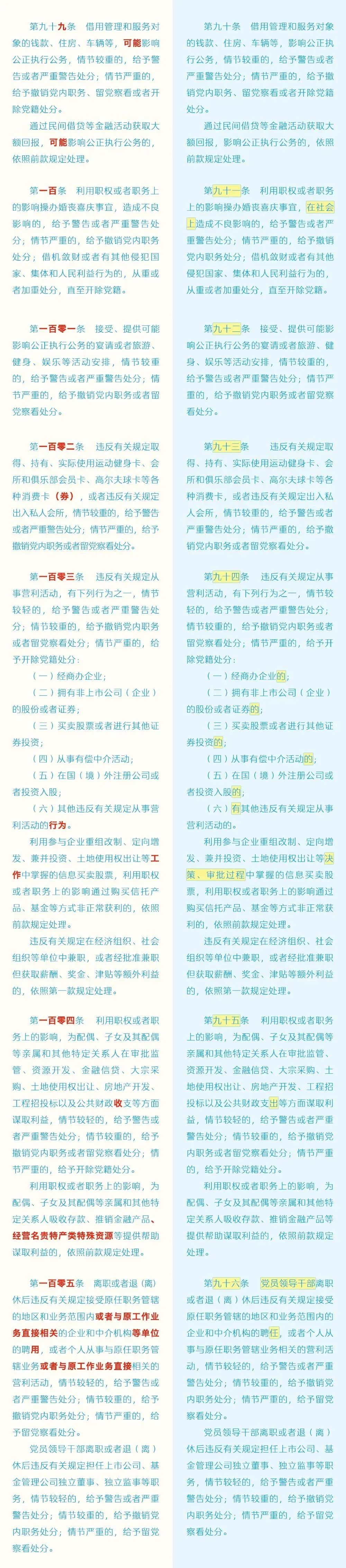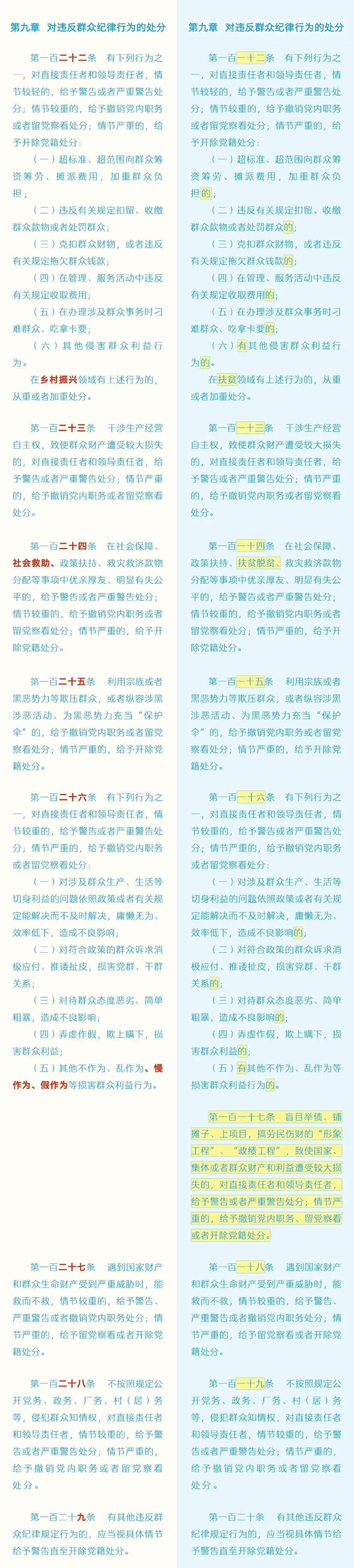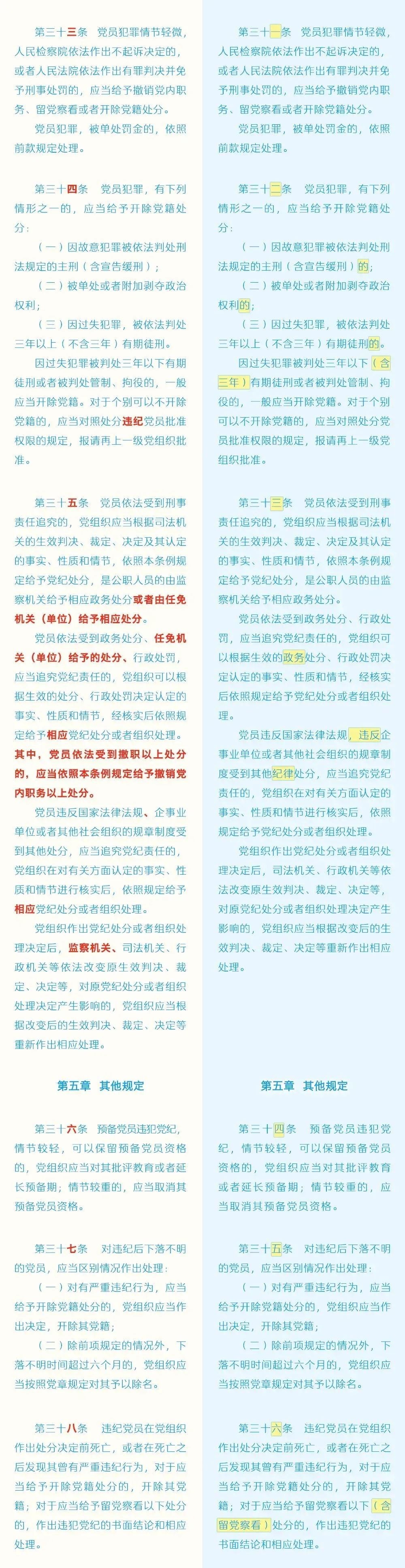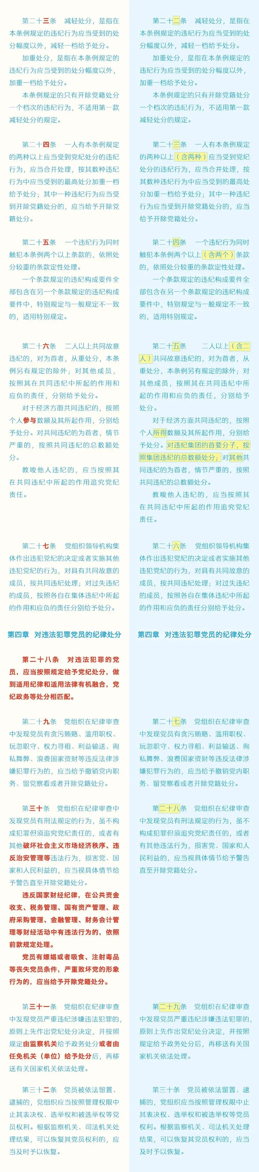 【党纪学习教育】 《中国共产党纪律处分条例》修订前后对照表