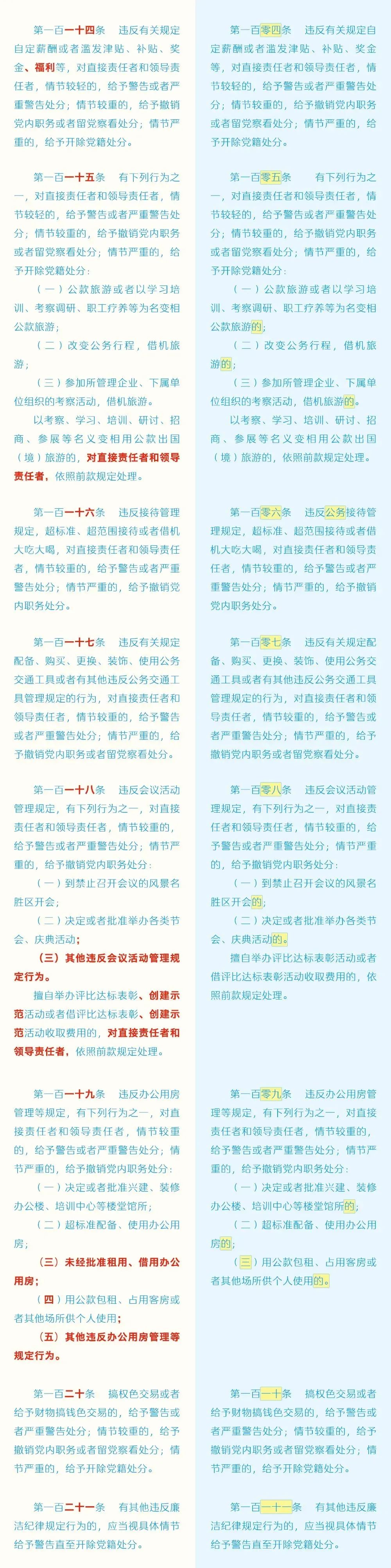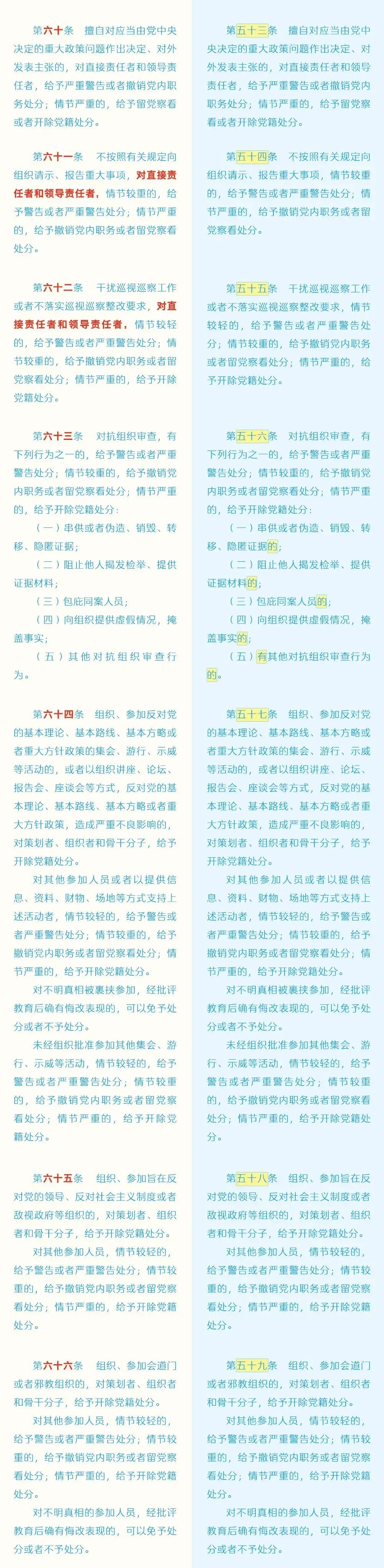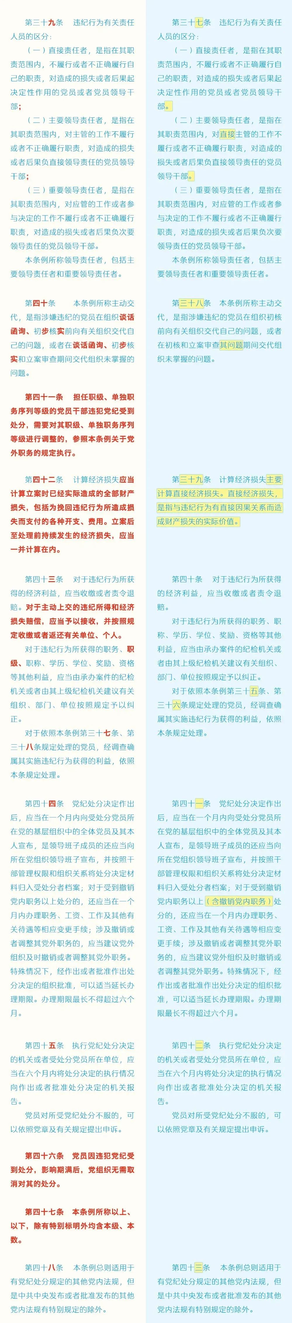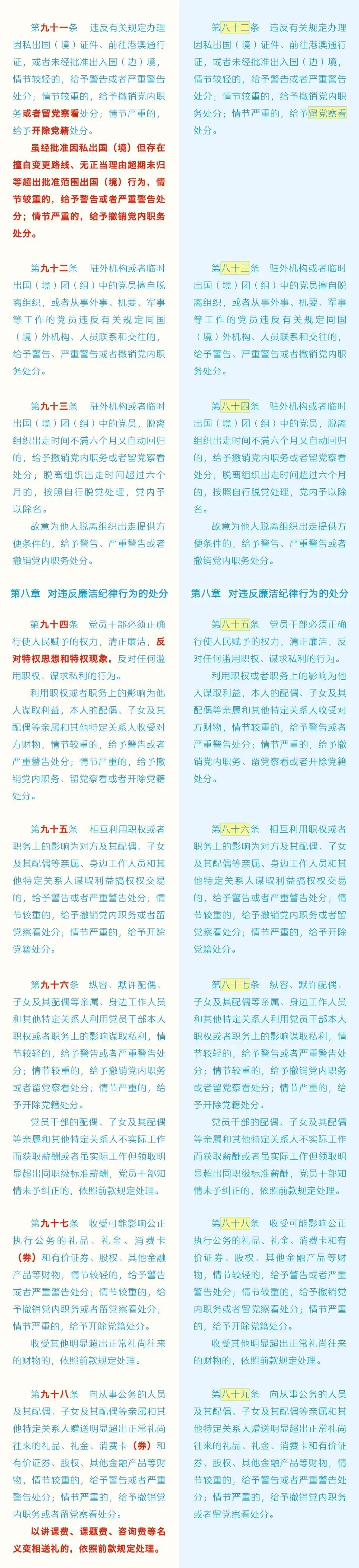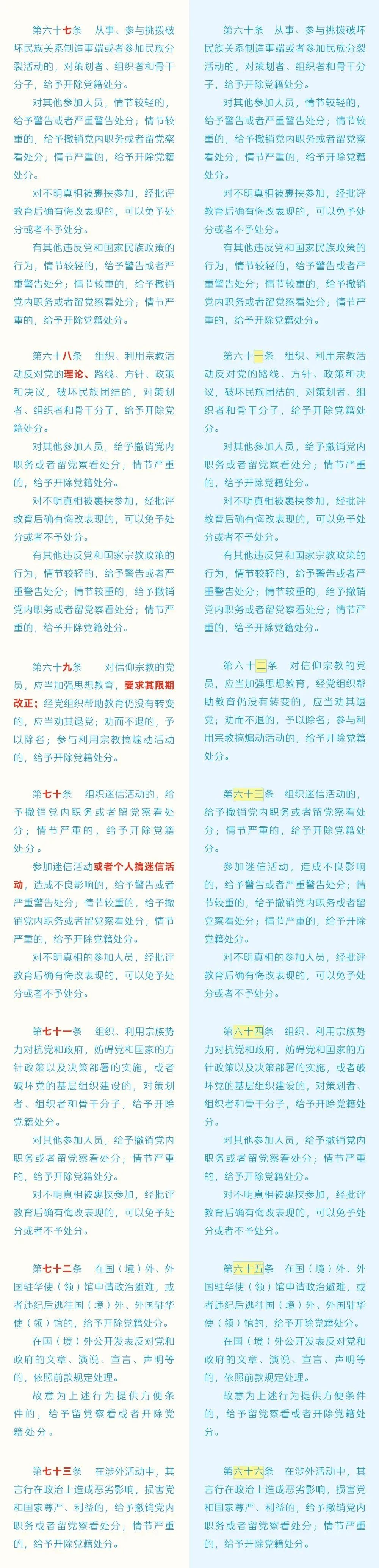 【党纪学习教育】 《中国共产党纪律处分条例》修订前后对照表