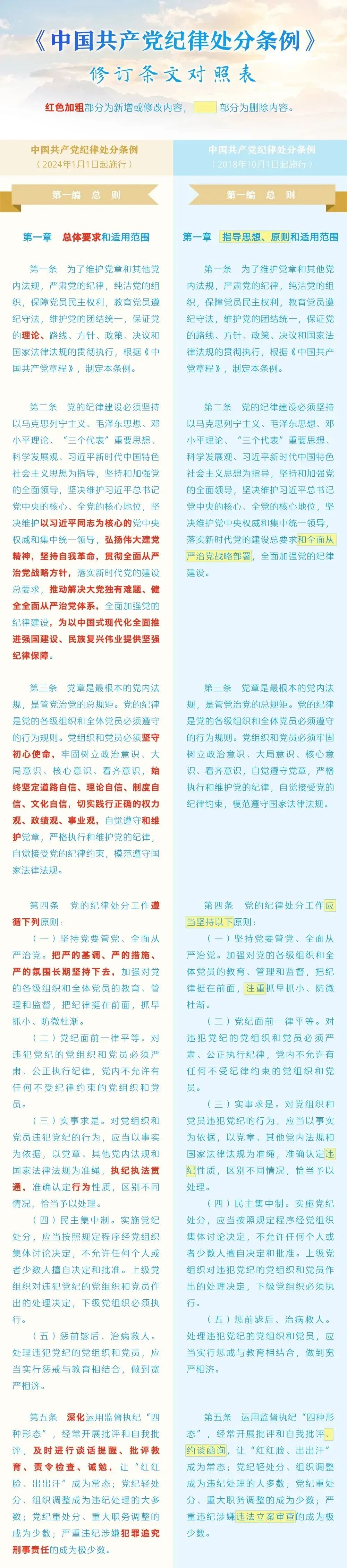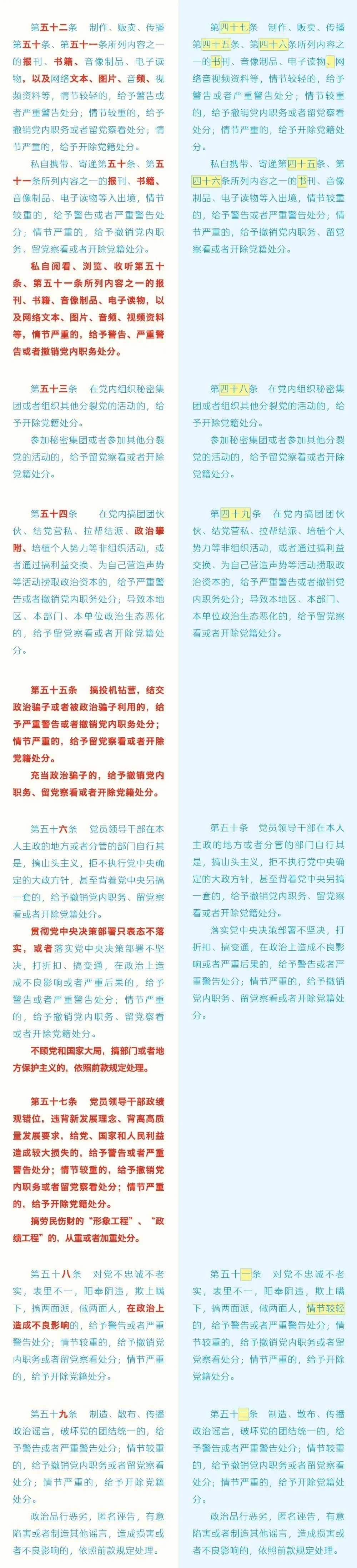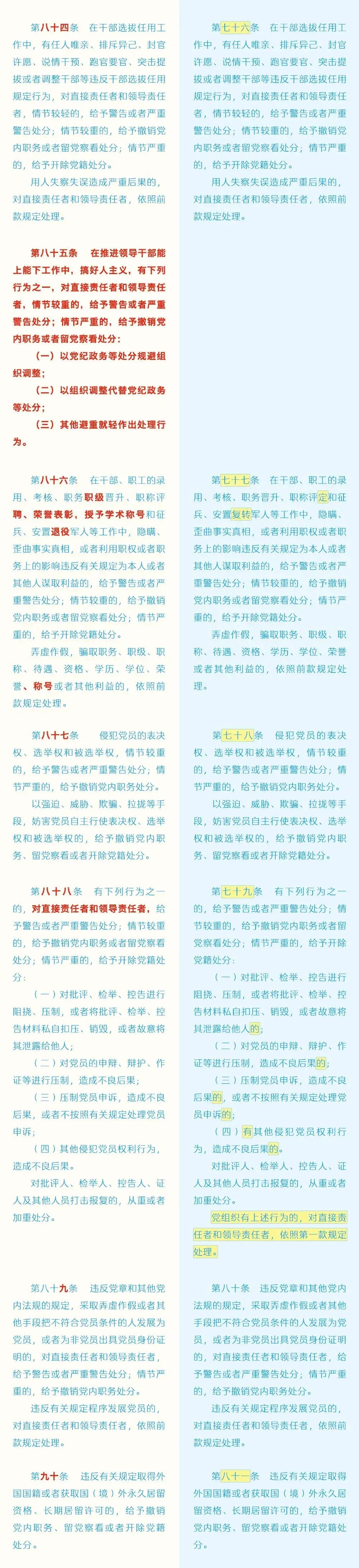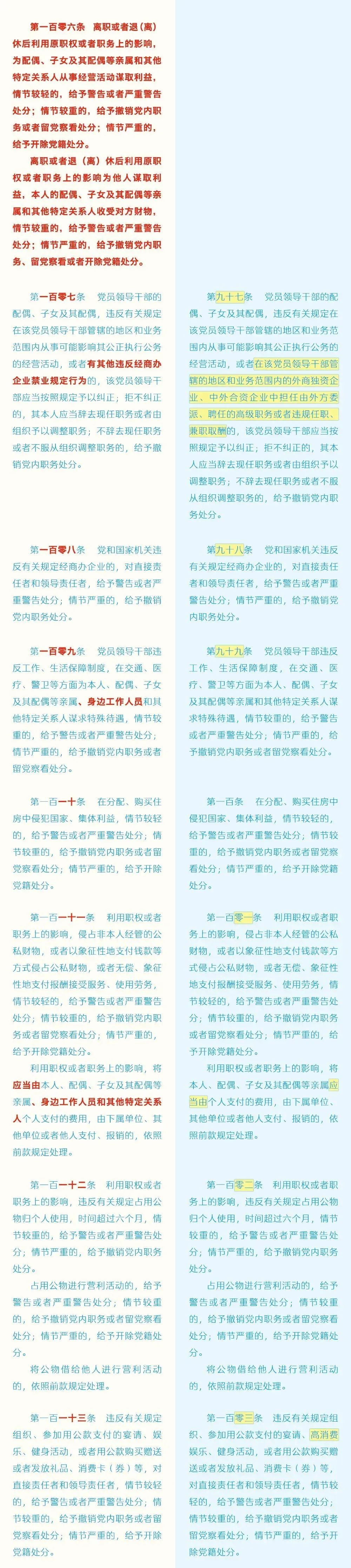 【党纪学习教育】 《中国共产党纪律处分条例》修订前后对照表